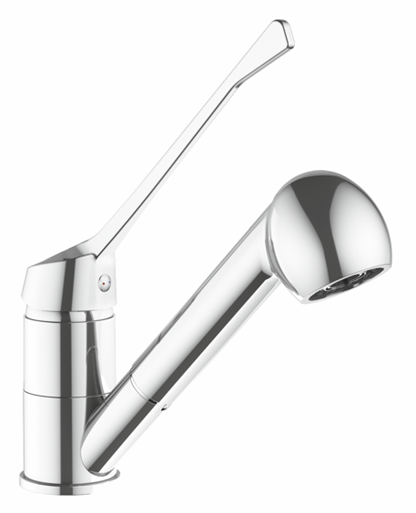 Este nuevo grifo de cocina con ducha extraíble cuenta con el acabado en cromado de alta calidad de la marca. El monomando está pensado para espacios profesionales en los que la salud es un factor clave como cocinas profesionales, hostelería, laboratorios, zonas de manipulación de alimentos y entornos sanitarios y geriátricos.